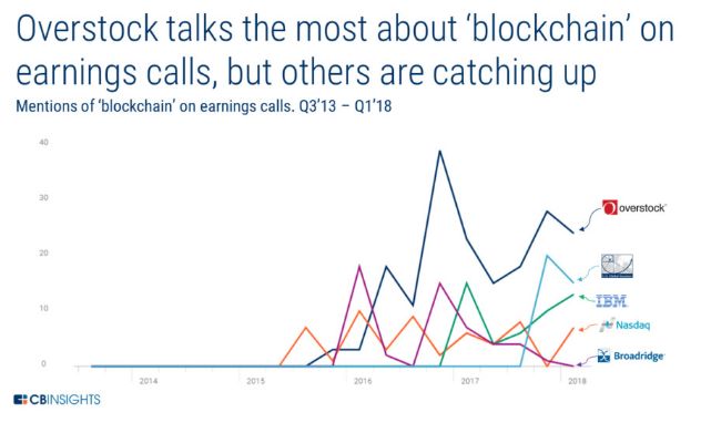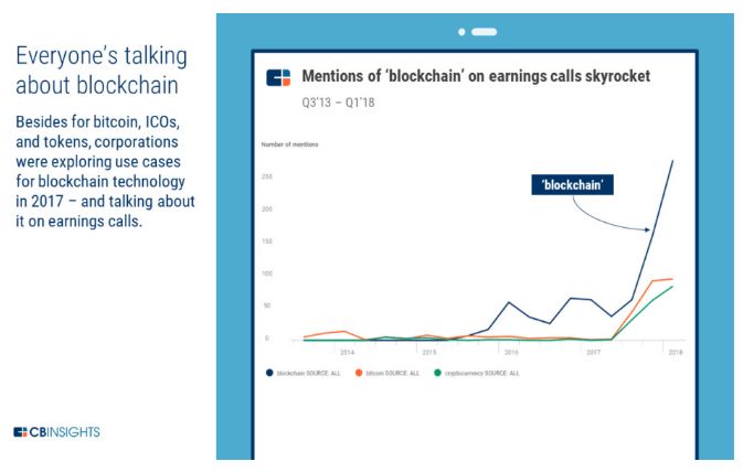 截至4月底,在2018年第一季度财报电话会议上,“区块链”已经被提及近300次。这表明,企业和分析师对这项技术有着真正的兴趣。