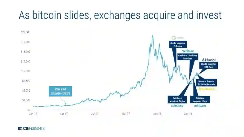 交易所意识到了猖獗的投机行为,并正通过风险投资寻找真正的投资案例。Coinbase推出了自己的风险投资部门Coinbase Ventures 。5月初,一家中国交易所火币宣布成立一支10亿美元的基金,用于开发亚洲区块链生态系统。Binance——按交易量计算最大的交易所——也宣布为百慕大区块链生态系统投资1500万美元。
