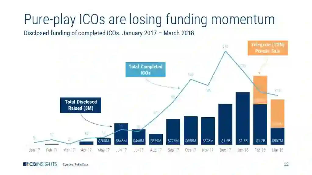 向预售的转变在数据中得到了证实,风险投资呈上升趋势,纯粹的ICO则呈下降趋势。