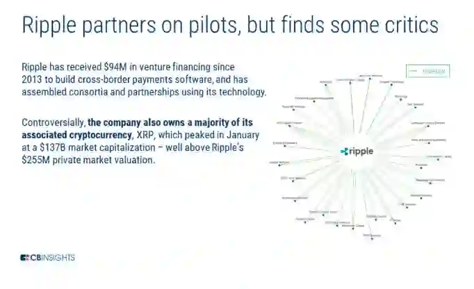 Ripple是这个群体中的一个异类;它不是一个联盟,而是组装使用其软件的联盟。Ripple获得了9400万美元的风险融资,用于构建跨境支付解决方案。今年3月,Ripple表示,它正在构建一个去中心化的支付应用程序,用于60多家日本银行之间的快速交易。