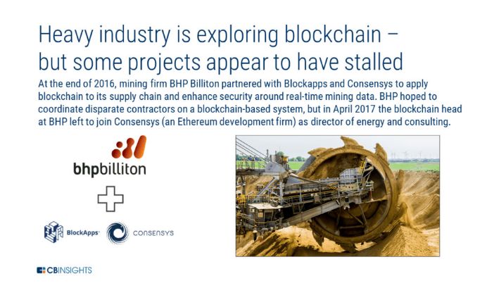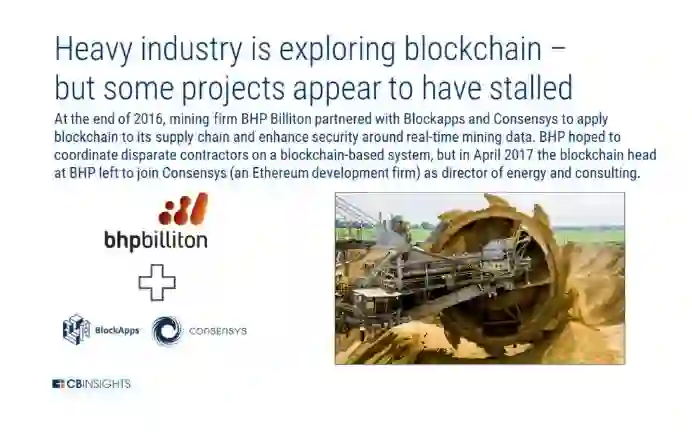 矿业公司BHP Billiton也上演了类似的故事。BHP Billiton于2016年启动了区块链项目,以加强安全性,并跟踪实时采矿数据。2017年4月,BHP Billiton的项目负责人离开,加入了Consensys ( 一家Ethereum开发公司),目前还没有关于该项目的进一步消息。