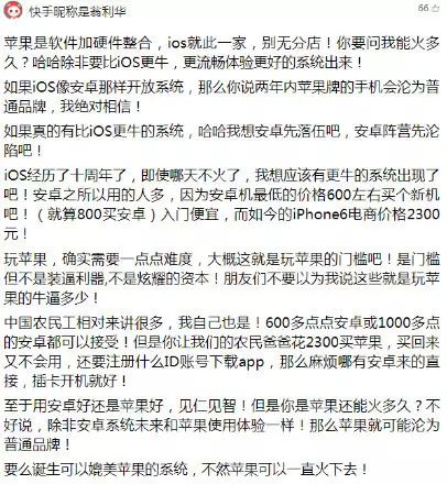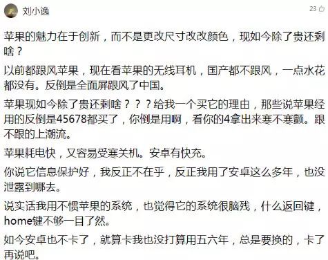 除此之外,也有一些网友认为,随着国产手机的崛起和安卓系统的优化,没必要再去花这么多的钱买苹果了。
