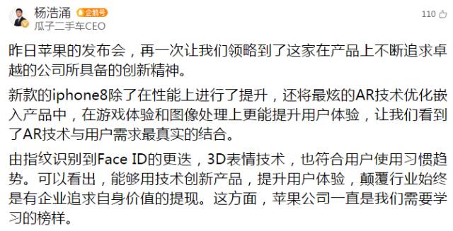 此次苹果推出的iphoneX 分为 64GB 和 256GB 两个存储版本,售价分别为 8388 元和 9688 元。可以说,一部手机面对如此的价格,已经可以算轻奢品了。那么,它的配置是否对得起这个价格呢,是否值得入手呢?京东CEO刘强东、瓜子CEO杨浩涌等企业大咖发表了自己的看法。