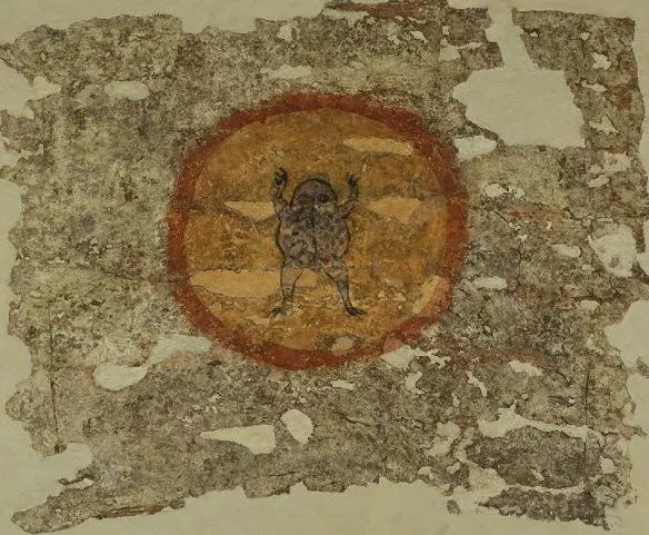 规矩都有了,女娲边上往往还有个月亮,月亮里有只蟾蜍,就是嫦娥险些变成的那个蟾蜍,人们说女娲的“娲”就是“蛙”的意思。