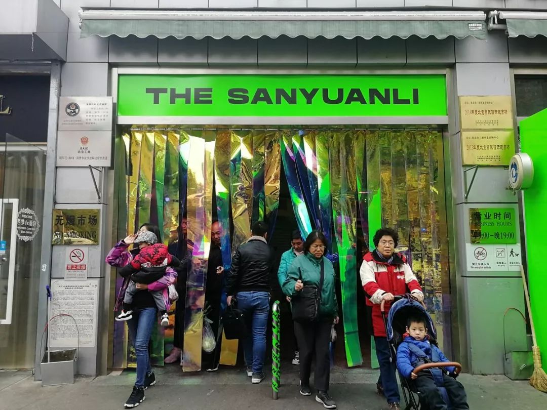 菜市场门口,绿底黑字无衬线的“THE SANYUANLI”挂在了最显眼地方。
