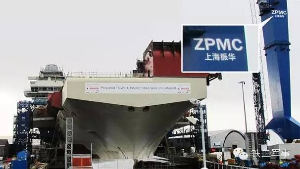 2014年,在英国“伊丽莎白女王”号航母的下水仪式上,“伊丽莎白女王”号航母所在船坞组装用的重型龙门吊车,却赫然印着“上海振华”的汉字字样。