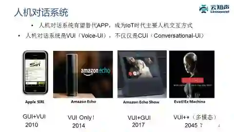 为什么人机对话系统目前在工业界这么热门?它最重要的一个意义是有望取代目前在手机上的 APP,成为 IoT 时代的一个最重要的人机交互形式,这是它的最主要意义所在。