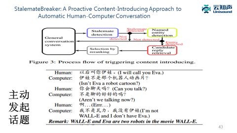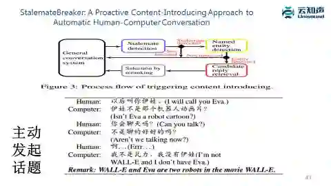 这里一篇百度的文章思想也是类似的,如果觉得聊天聊不下去了,会先在上下文里去做实体分析和实体链接,找到作为聊天主题的实体之后再根据知识图谱找相关的实体,根据相关的实体产生话题。