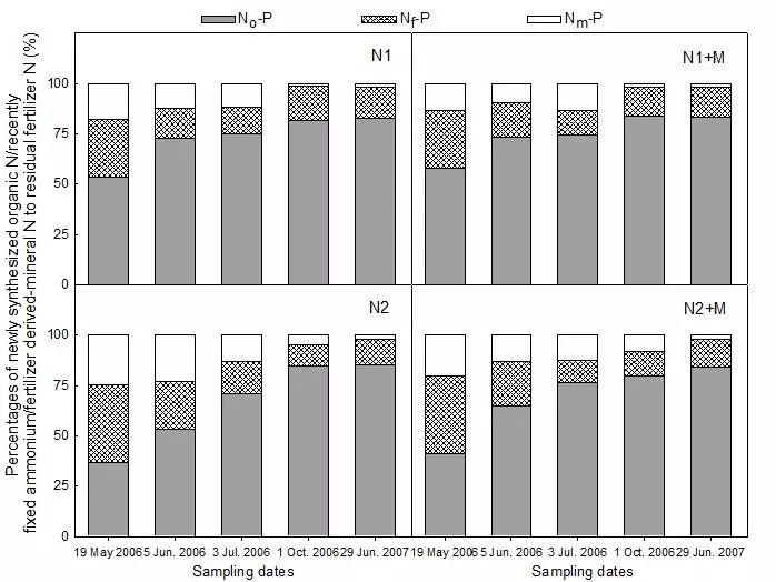 图2. 肥料氮在土壤不同形态氮库中的转化特征