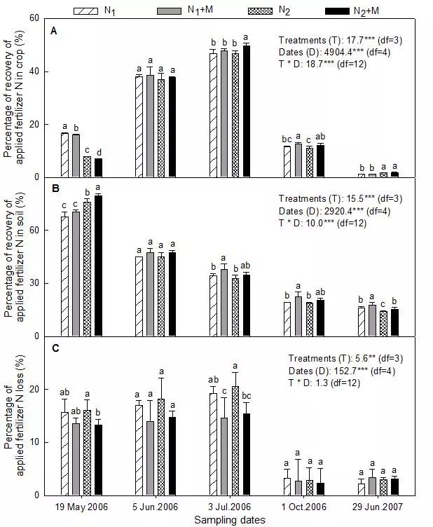 图3. 肥料氮在土壤-作物系统中的分配与去向