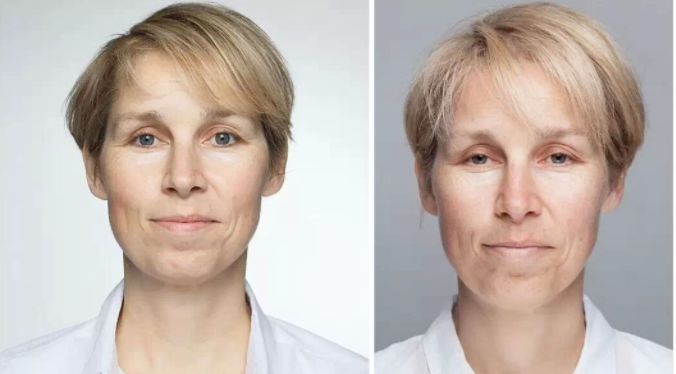 46岁的Sarah Chalmers参加了英国伦敦的一个睡眠学校的实验,连续5天只睡6小时与睡满8小时的面容对比照