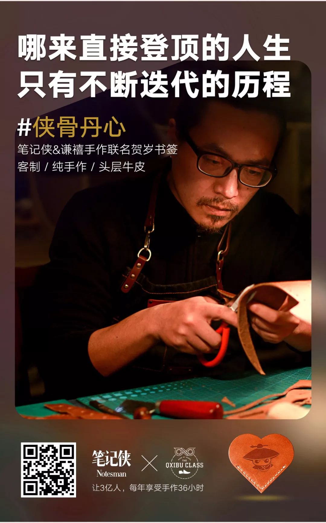 笔记侠&谦禧手作联名书签,精选美国进口头层公牛牛皮,全手工制作,历经:画版、裁皮、削皮、打斩、缝合、封边,一名熟练皮匠一个工作日(8小时计)约可完成19—23个......