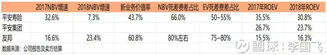 两个公司各有优劣。在新业务价值率、NBV死差费差占比和EV死差费差占比方面,友邦领先一些,但平安寿险追赶的速度很快,估计再过四五年就会接近。NBV增速方面,平安寿险多年来一直远超友邦,但在2018年落后了一些,但我感觉这并非常态,只要经济保持平稳增长,未来回升至15%,甚至更高是完全有可能的。平安寿险的ROEV比友邦高了一倍左右,平安集团的ROEV也比友邦要高约50%,说明平安赚钱能力比友邦强太多。友邦的PEV估值经常保持在2倍以上,这给平安留下了很大的想象空间。