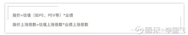按这个模型,要估算某一个公司未来能涨多少,先估计未来它的业绩能增长多少,然后再估计市场给它的估值有多少变化,才算完成。