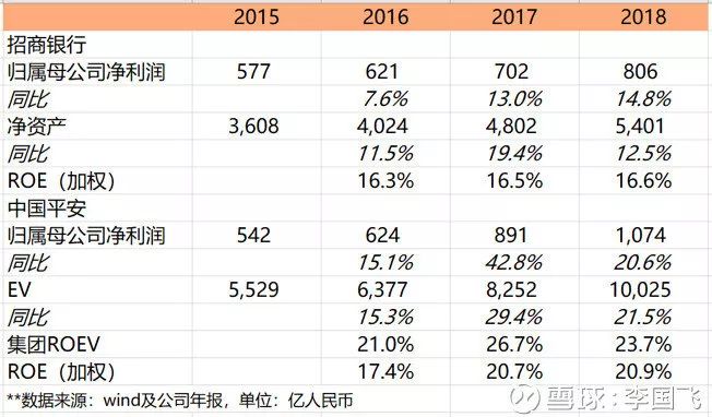 资产增长方面,自2016年三年来招行净资产增幅分别是11.5%、19.4%和12.5%,而平安集团EV增长分别是15.3%、29.4%和21.5%。