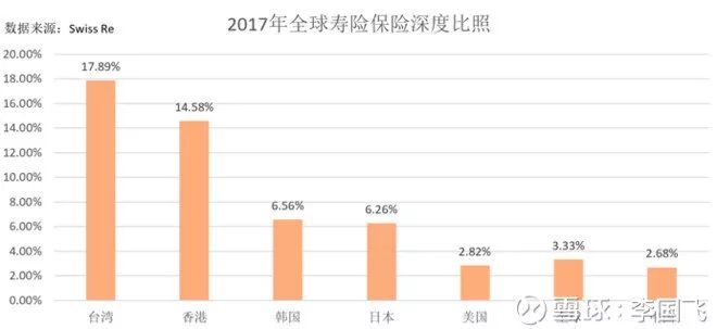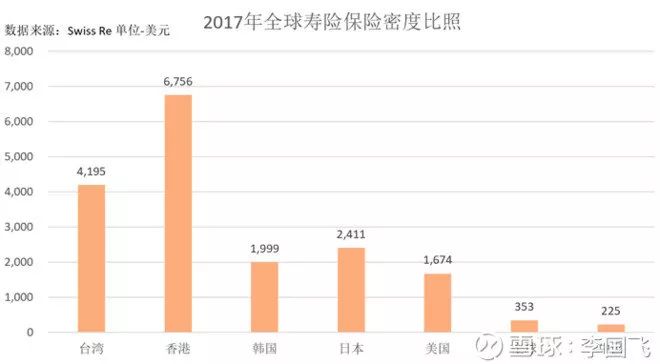 2017年中国的保险密度(每年人均寿险保险支出)只有225美元,低于全球人均353美元的水平。