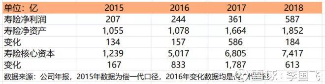 中国自2016年正式实施偿二代监管制度及相应的会计准则,走在了全世界的最前列。在实施的两三年时间里,监管机构和保险公司在小心翼翼地适应并完善这个全新的制度,而同期还发生了很多大事,2017年保险业134号文发布,强调保险姓保,期望通过产品设计的角度限制中短存续期产品的设计,这个文件对保险业2017和2018年的运营以及会计报表影响巨大,另外,2018年平安第一次实施IFRS9新会计准则,适逢当年股市暴跌,平安的业绩因此受到了比较重大的冲击。这些因素叠加在一起,产生了很多数据干扰,让我们不容易理解偿二代本身所给保险业商业模式所带来的石破天惊的变化,从大量非常复杂的数据里,我筛选了两个方面的数据阐述这个问题,并且尽可简明易懂: