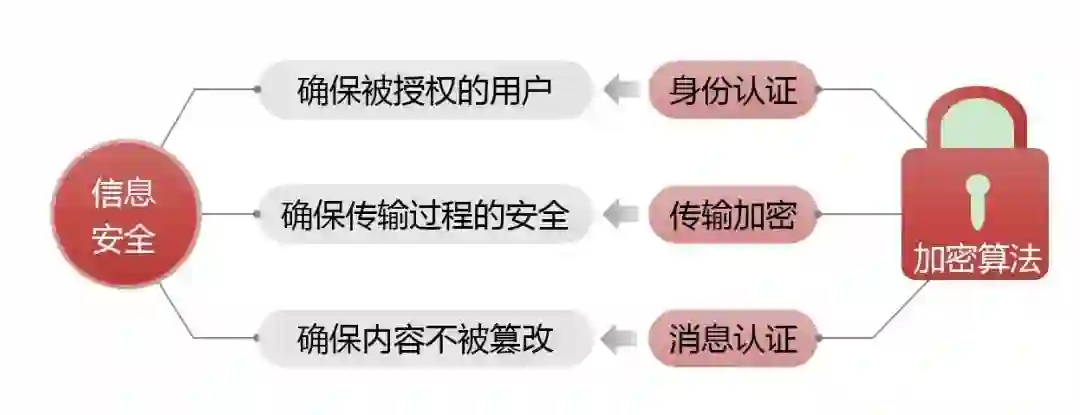 身份认证这一步解决了之后,在传输过程中如果信息被对方窃取了该怎么办?这个时候我们就需要对传输的信息进行加密,加密后窃听者就只能听到一堆噪声。当窃听者既无法冒充上级又无法窃听信息,万一对信息进行破坏篡改,抱着我得不到你们也得不到的心态,那该怎么办呢?这时候我们可以用一种“消息认证”的手法来进行保证数据的完整性和不被篡改。