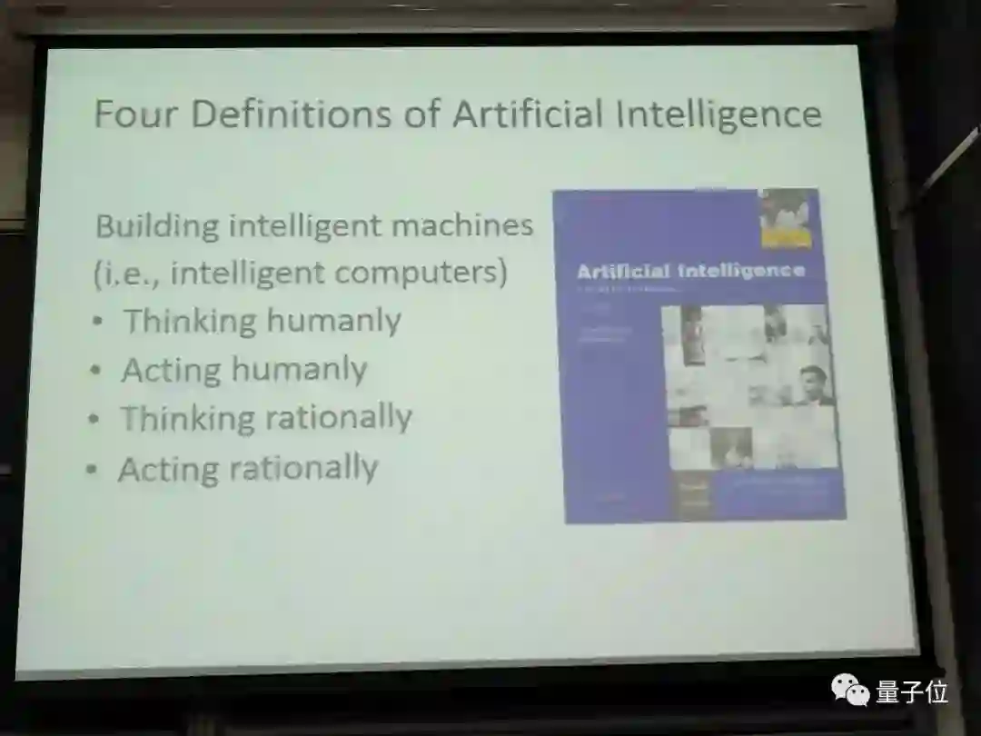 我们不在意他怎么实现的,只在意他能否实现。我们把它叫做智能系统,是一个合理行动的智能机器,是希望它在完成某一任务的时候要达到人的水平或者超过人的水平。绝大多数的人工智能系统,基本都是沿着这样的目的在做,希望构建更好的服务我们的工具。