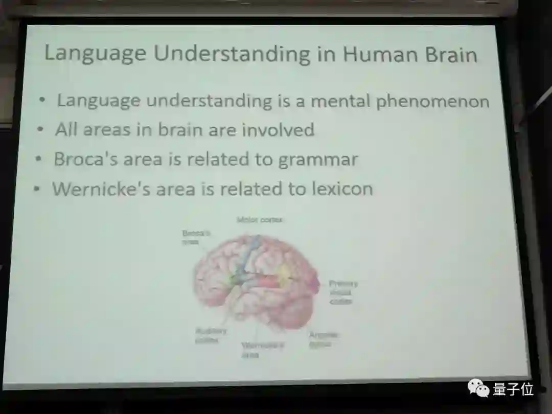 人脑在处理和理解自然语言的时候,整个大脑都在参与。比如人在参与听speech的时候,人的整个大脑都参与其中,这比起光让人去看一个东西,或者光让人去做一个动作,就不一样,看和做动作,大脑反应的东西还是有限的。但是语言理解的过程中,整个大脑都在参与。