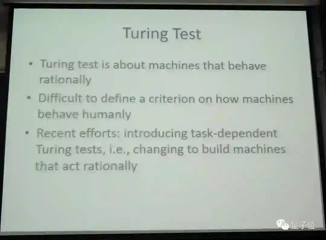 现在又有一些人去定义新的图灵测试,基本上是基于任务的。具体的任务里面,当任务确定了之后,问题转化了;在具体任务里去测试,去定义。