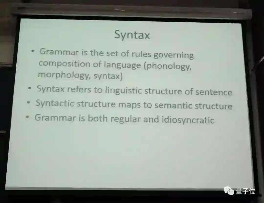 句法的内容非常丰富,它的一个重要特点是一个句法既有规定的使用方法,但也有例外。这个句法,语法的发明和演进不是一个人规定的,可能是成千上万人参与制定,大家通过很长的时间或者上万年一起发明的,所以它是自下而上生成,就像维基百科生成的过程一样。