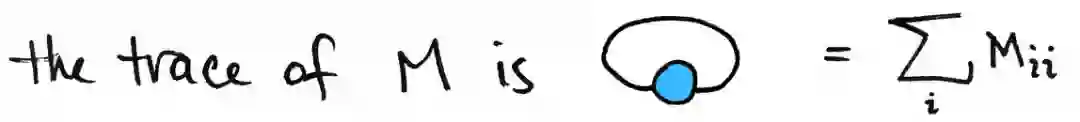 关于这个图形符号,我们还有更多想说的,但我将用另一个值得注意的特性来总结:证明过程可以变得非常简单!以矩阵的迹为例。矩阵的迹图很简单。它被定义为一个共同索引的总和:
