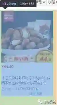 注释4:这里开始是重点,webdriver主要有八种查找元素的方式,这一行是采用class_name的形式进行查找,并且注意到elements这里的复数,这个方法用来查找页面上所有的符合条件的元素,如果是没有s的方法就只能找到首个符合条件的元素,这一行是使用谷歌开发者工具的左上角小箭头工具对元素进行审核,并找出所有的商品条目,其中一个条目范围如下图所示: