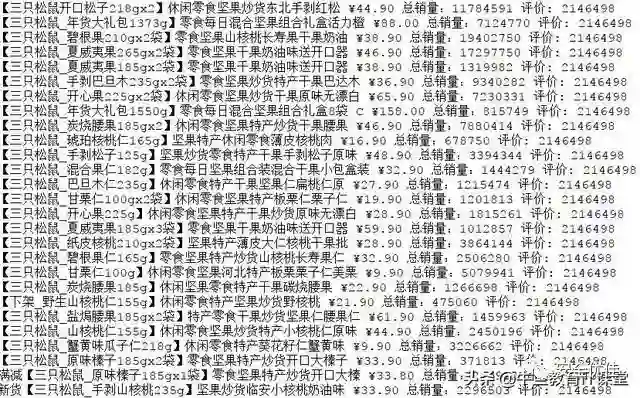 以某宝某只松鼠店铺为例爬取”坚果炒货”的商品名称、价格、销量以及评论数量