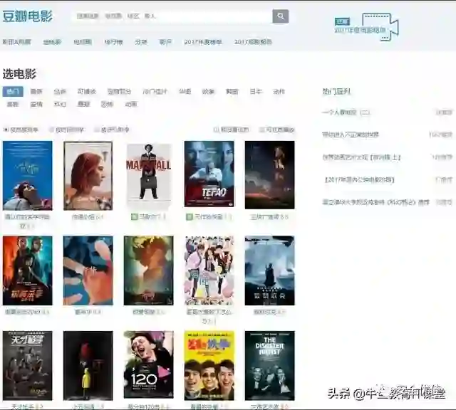 这里我们以上面提到的豆瓣电影(若链接失效请访问:https://movie.douban.com/explore#!type=movie&tag=%E7%83%AD%E9%97%A8&sort=recommend&page_limit=20&page_start=0)为例做一个分析,提取出热度排名前100的电影名称和评分以及在豆瓣的地址。
