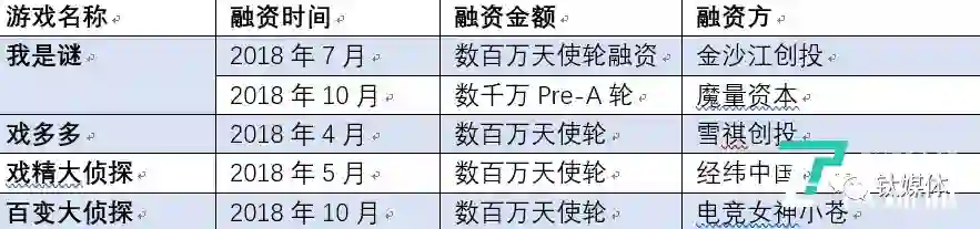 在综艺热度催生的肥沃土壤下,剧本杀也获得了资本的青睐。经钛媒体整理,一些主流推理社交游戏今年的融资情况如下表: