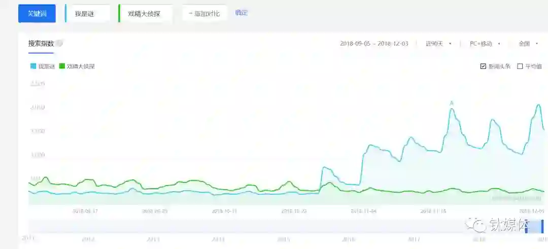 “我是谜“和”戏精大侦探“近三个月百度指数截图