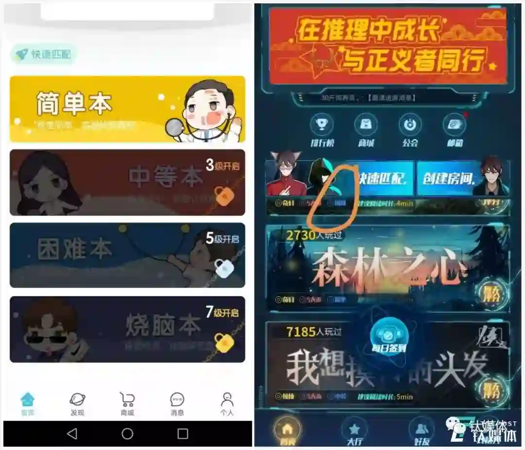 再者,细分用户市场也是优质客户体验的保证。在“我是谜”中,游戏剧本细分为:简单本、中等本、困难本和烧脑本,需要正确率和已玩次数提升等级后,才能开启高阶版本,使得“戏精”和“萌新”都可以找到适合自己水准的房间,这种用户市场的细分加强了玩家体验。