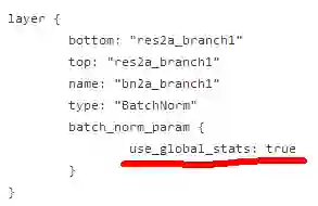 因此,对于随机初始化训练BatchNorm层,只需要在Proto文件中移除use_global_stats参数即可,Caffe会根据当前的Phase(TRAIN或者TEST)自动去设置use_global_stats的值。
