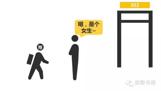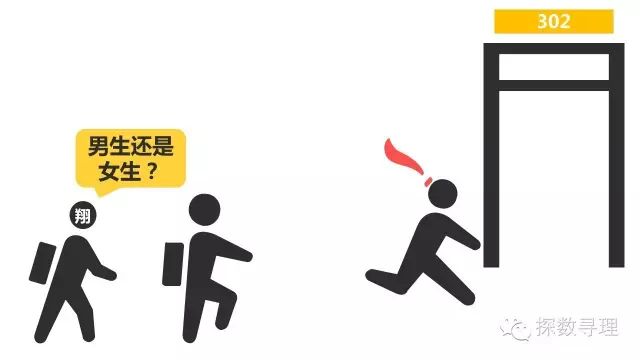 假如有一天你和基友阿翔在上学的途中,看到有一个前面一个身影进了你们等下正要上课的教室。前面的身影走得比较快,你仅仅看到是ta有一把长发。这个时候,你的基友阿翔问你,“咦,前面这个同学走得很快哦,没有看清,是男生还是女生?”