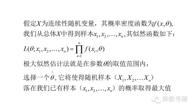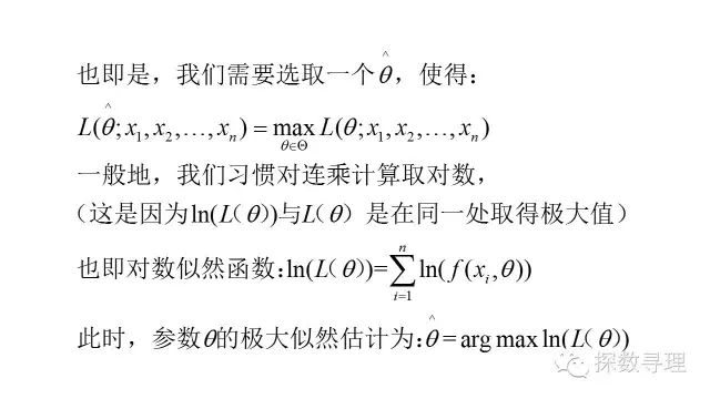 3)对对数似然函数求解最大值(一般可以通过求导数解得);