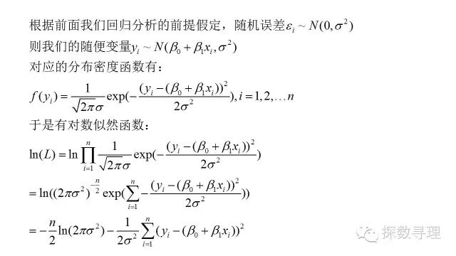 接下来,我们不妨把极大似然估计应用在一元回归分析中进行举例,同时也可以与最小二乘法结果进行比较: