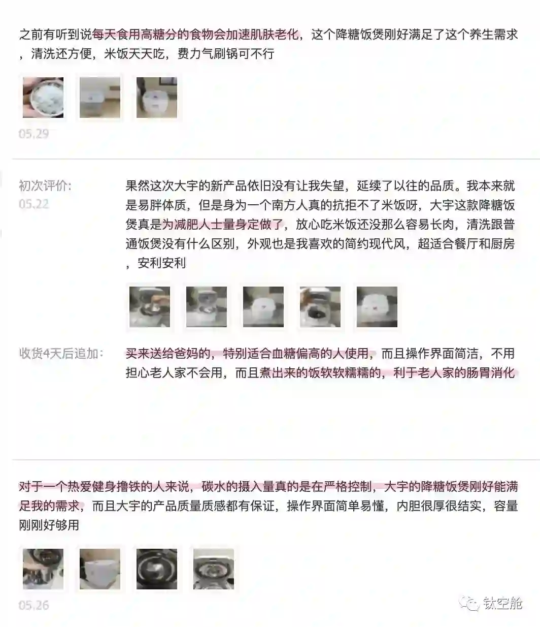 还有讲究养生健康的朋友,也可以使用脱糖电饭煲,减少糖分的摄入,降低未来患糖尿病、高血糖的风险。