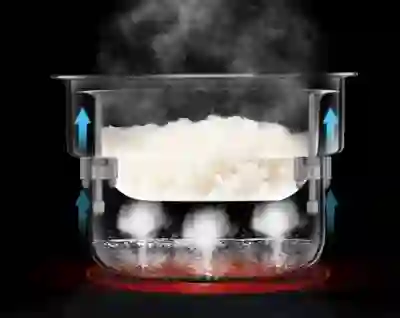 在煮饭的时候,通过预设的特定程序,电饭煲会先用大火把米饭煮到7-8分熟,同时将米饭中的糖分释出并糊化成米汤。