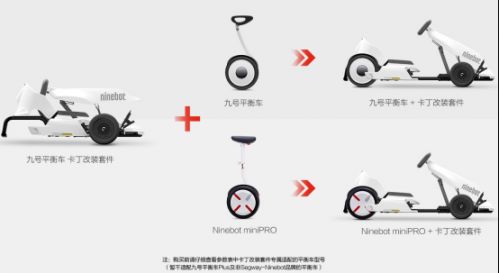 主要搭配九号平衡车、Ninebot miniPro这两款其中产品作为卡丁车的“后轮”用来驱动,增加前轮+座椅等改装件,如果你没有九号平衡车,那么你就需要购入整套装备。这产品的诞生是打破平衡车的常规玩法,不再拘泥于平衡车的传统玩法,变身成卡丁车玩具的新技能。