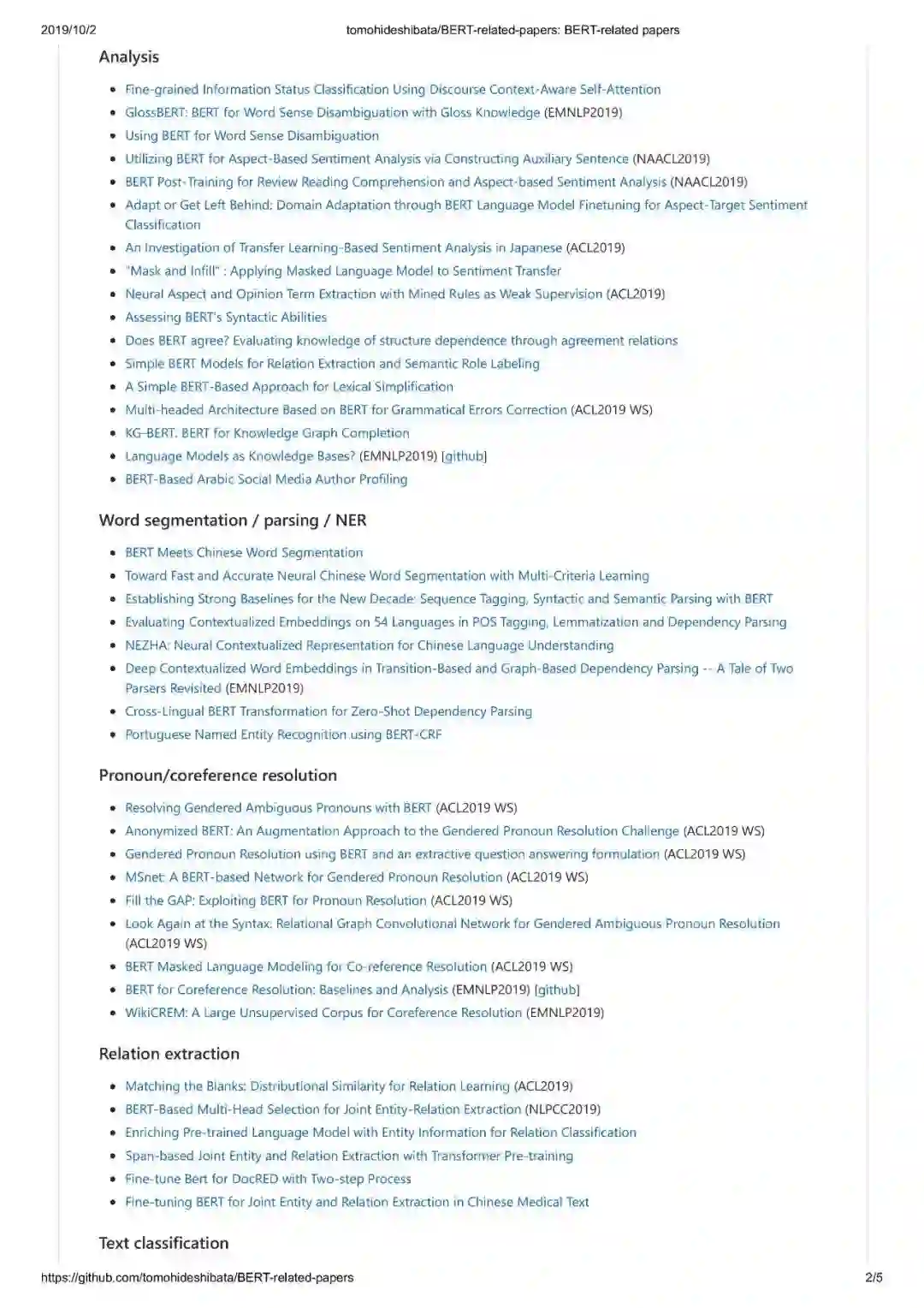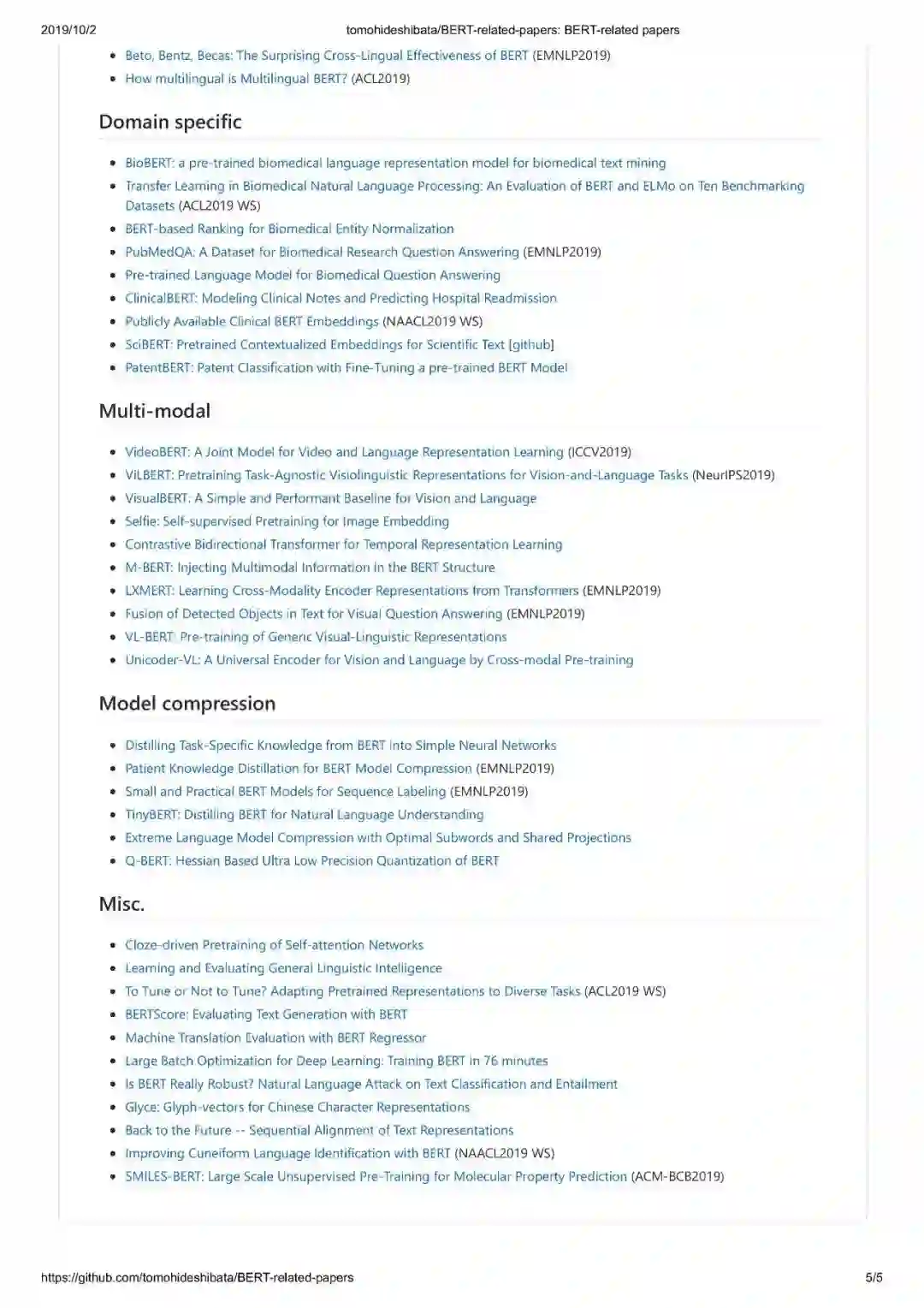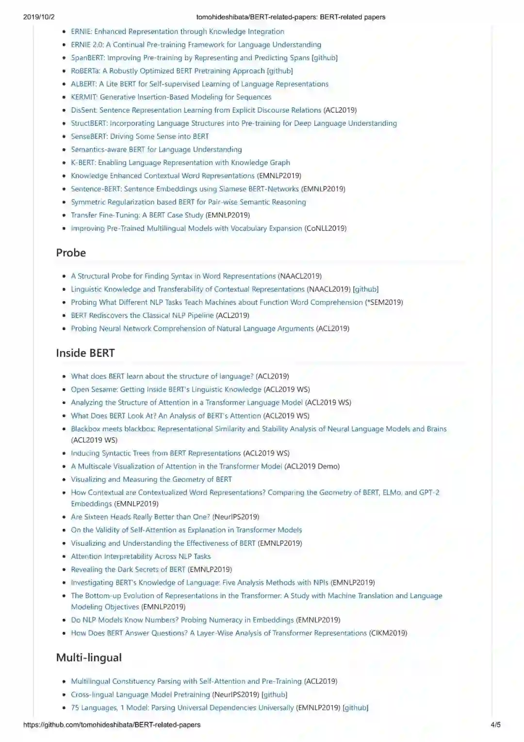 https://github.com/tomohideshibata/BERT-related-papers