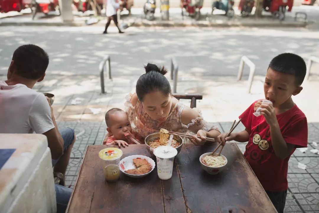 ▲带着孩子上街吃一碗小面,因靠近重庆,这里的面条主打麻辣味