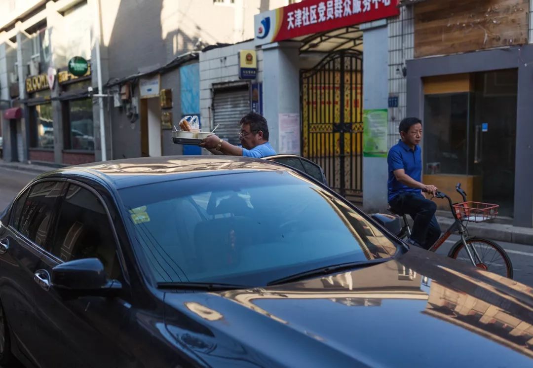 ▲开私家车来汉口小巷给一家人买早餐的大叔。