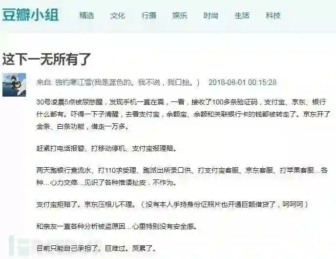 最近,豆瓣有一个盗刷帖触动了很多人的神经,“这下一无所有了”,楼主一夜之间财产全部都没有了,听起来都阔怕…