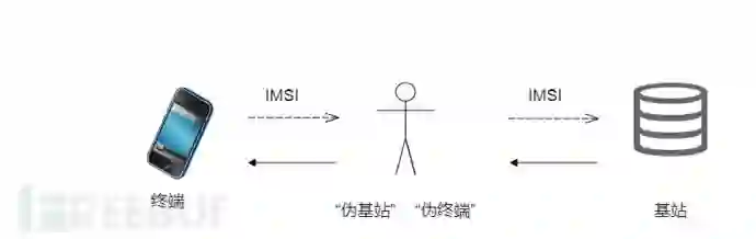 这种新型的伪基站更是实现了将伪基站与伪终端合体,采用“两头欺骗”的方法,在移动网络和真正的用户终端之间建立起了联系,先冒充用户发起呼叫,当网络侧要验证用户身份时又诱骗真正的用户终端反馈身份信息(IMSI),从而使得网络侧被欺骗。