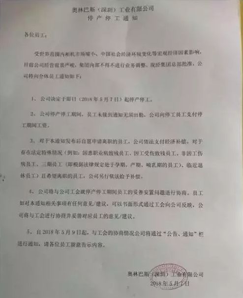 北京时间2018年5月7日,日本百年巨头奥林巴斯传来一个重大消息!其旗下最大的生产制造基地,深圳工业有限公司宣布停产停工!仅剩的1400名员工也面临失业!