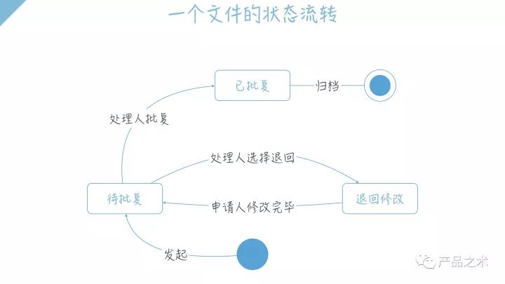 首先我们看下下面这张状态机图,展示了一张简单的单审批人文件的状态流转情况。