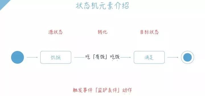 再加上动作和条件,我们就可以完成一个状态机图了: