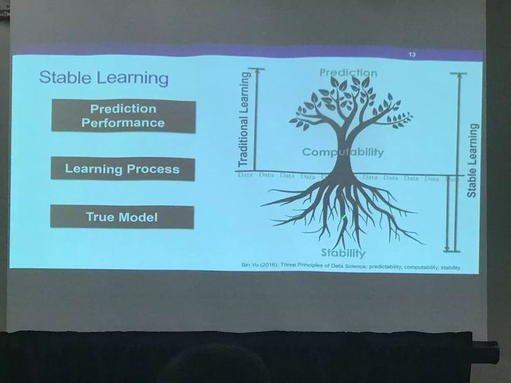 崔教授最后用一张形象的“树形”图案表示了稳定性、可计算性和可预测性的关系,以此说明稳定性学习和传统学习方法二者的区别与联系。