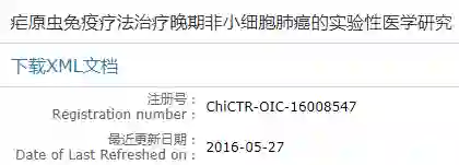 中国临床试验注册中心的信息显示,肖蕾妈妈当时参与的临床试验为“疟原虫免疫疗法治疗晚期癌症的临床研究”(注册号为 ChiCTR-OIC-17013921),试验在广州复大肿瘤医院进行,陈小平为研究负责人,中科蓝华为试验主办单位,研究的主要目的是为了评价疟原虫免疫疗法治疗晚期癌症的安全性和有效性,受试者20名,主要是结肠癌、乳腺癌、肝癌、肺癌、胃癌等实体瘤的晚期患者。